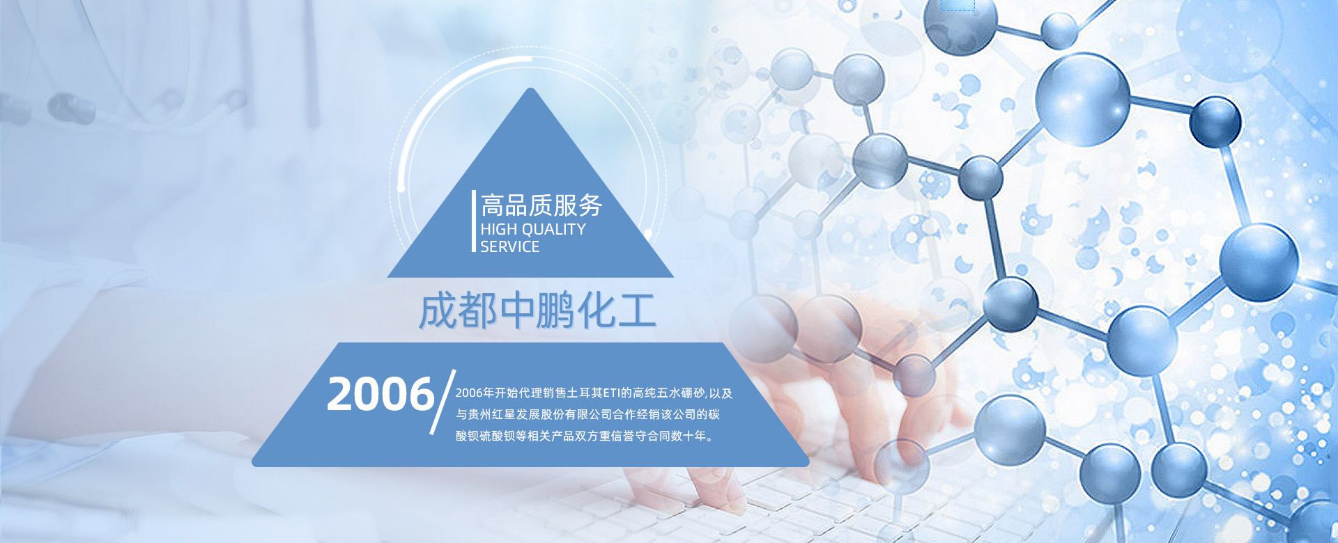 成都中鵬化工有限公司成立于2001年,位于成都市新都區(qū)木蘭木名商塑化城2棟11號(hào),公司成立16年以來(lái),一直堅(jiān)持為客戶(hù)提供各種基礎(chǔ)化工原料的產(chǎn)品。我公司長(zhǎng)期對(duì)于玻璃、陶瓷、電鍍、洗滌、“硼砂”、“碳酸鋇”、“氯化鋅”、“氯化鉀”、“硫酸鋅”等基礎(chǔ)化工原料的開(kāi)發(fā)供應(yīng)。 公司現(xiàn)在員工上百人,在全國(guó)擁有多個(gè)營(yíng)銷(xiāo)體系和完善的售后服務(wù)體系,長(zhǎng)期以來(lái),通過(guò)為客戶(hù)提供各種基礎(chǔ)化工原料的產(chǎn)品,形成了良好的合作關(guān)系...